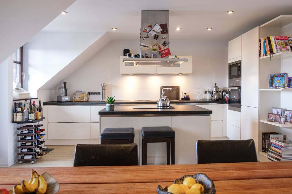 Zum Verkauf steht eine sehr schöne Dachgeschosswohnung in zentraler Lage von Böblingen. Umfangreiche Einkaufsmöglichkeiten, wie z.B. das Einkaufszentrum Mercaden, die Fußgängerzone und der Hauptbahnhof / S-Bahn und Busbahnhof sind in wenigen Gehminuten zu erreichen.Die Wohnung befindet sich in ruhiger Lage im dritten Obergeschoss eines gepflegten Mehrfamilienhauses mit insgesamt 12 Parteien.